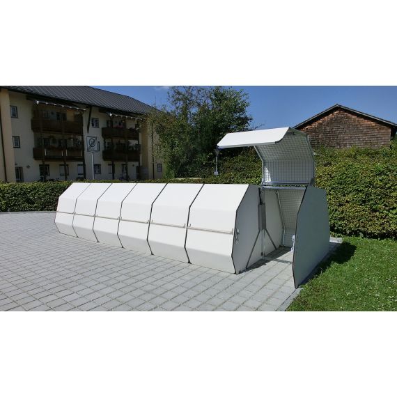 Sykkeloppbevaringsboks for 2 syler. Prisen gjelder den første boksen i en rekke ( med to sider). . Denne varianten med dør i stålgitter og uten gulv.